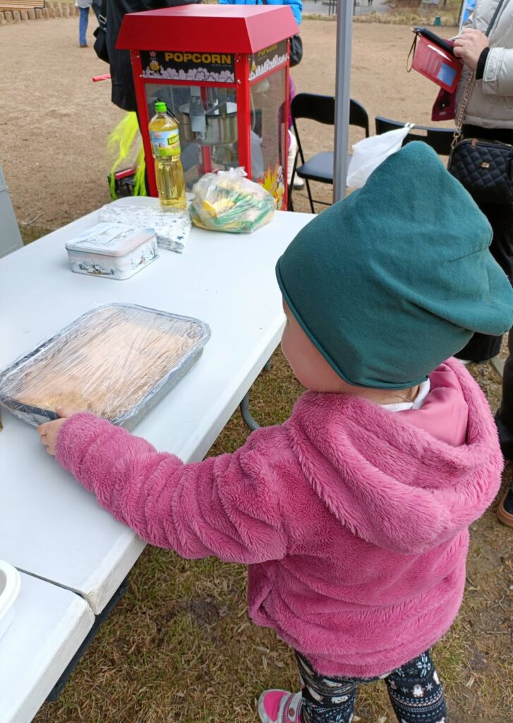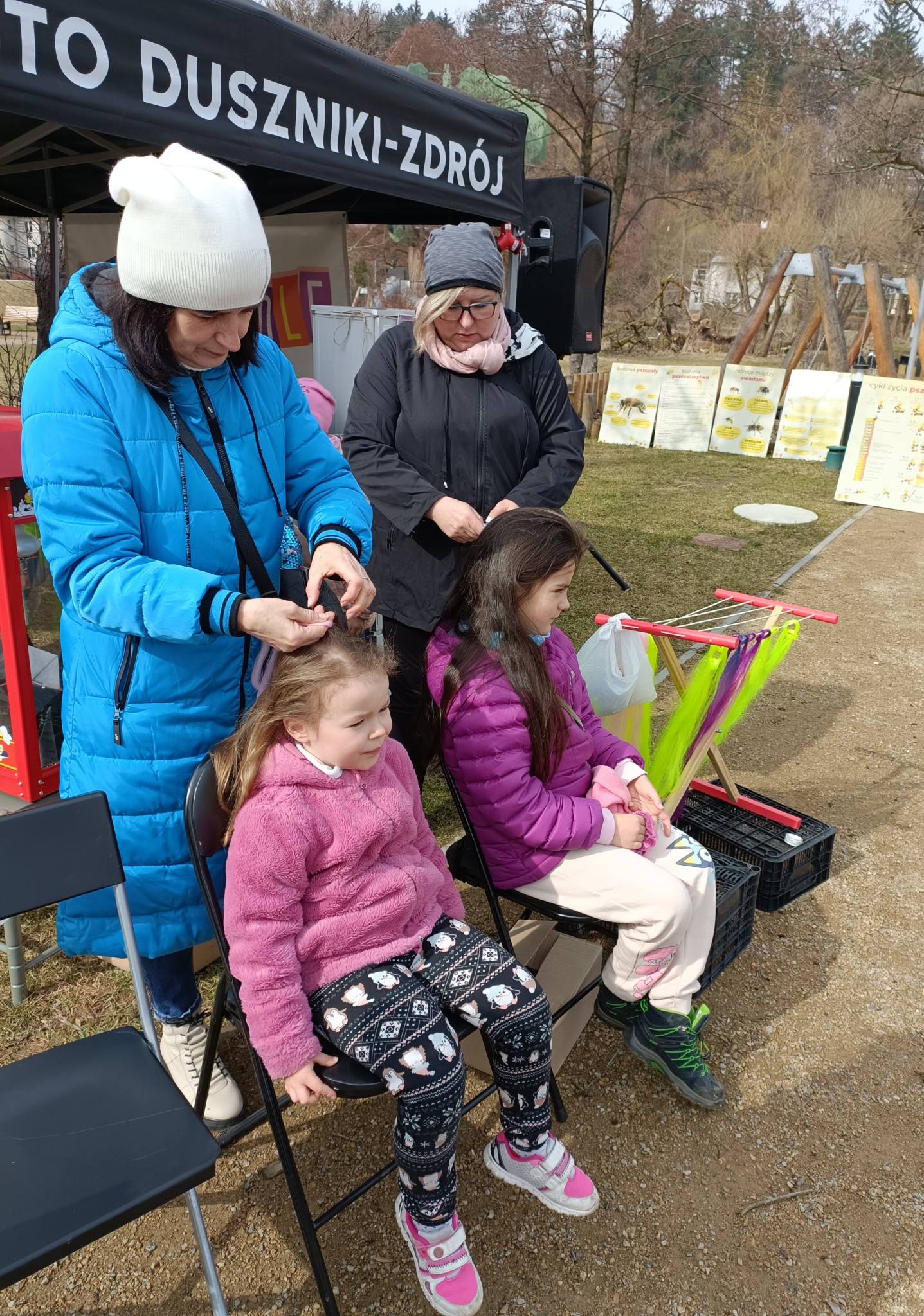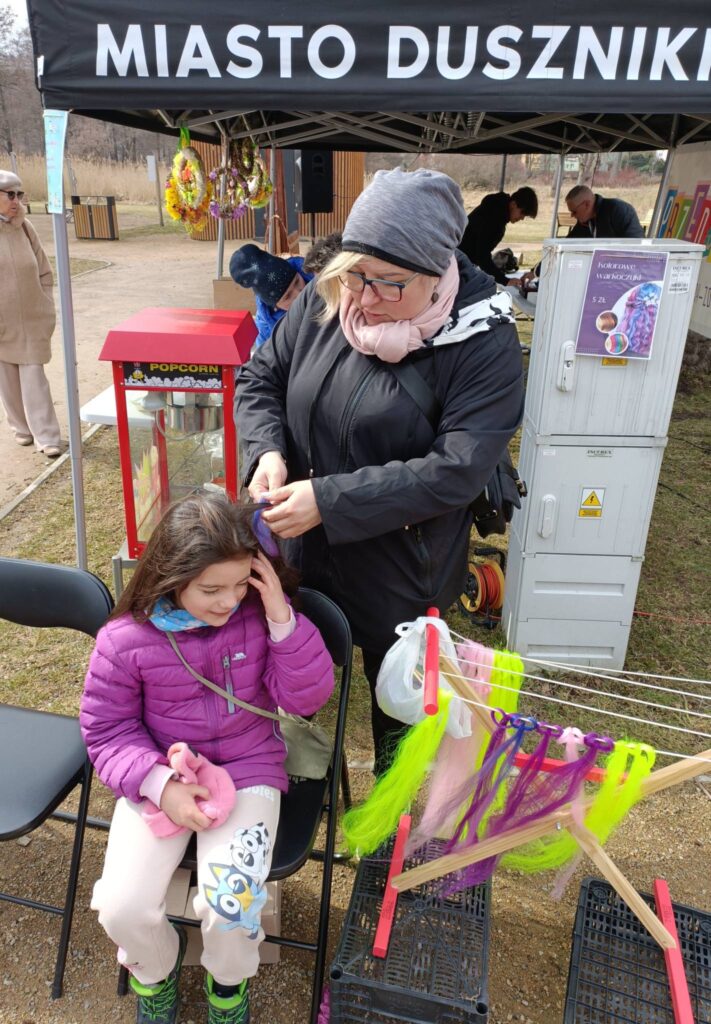 oczywiście nie zabrakło naszego stoiska, które oferowało przepyszne ciasta upieczone przez rodziców, popcorn, piękne ozdoby wiosenno – świąteczne. Dodatkowo była możliwość ozdobienia włosów kolorowymi warkoczykami.